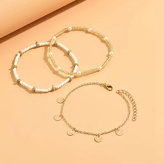 Set de Bracelets de Cheville Superposés Coastal Charm 3 pièces | Or